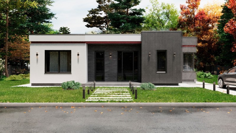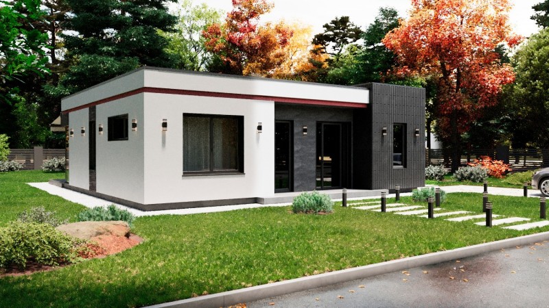 Концептуальный дом от строительной компании "ДМ Групп" с рациональной планировкой. Зонированная кухня - столовая с отдельной гостиной. Панорамные угловые окна обеспечивают достаточно света и выход на террасу. В доме предусмотрены две спальни и современная мастер-спальня, которая предлагает все удобства для комфортного проживания.