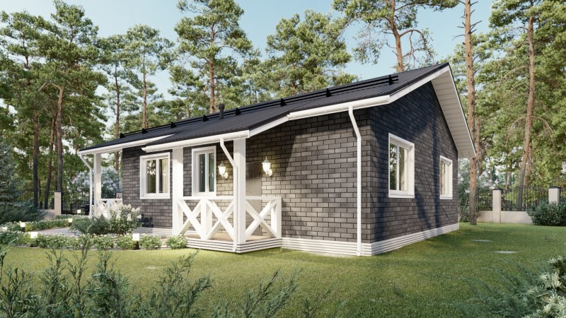 Данный дом спроектирован с учетом максимального комфорта для жильцов. В нем предусмотрены две спальни, которые идеально подойдут для проживания семьи с детьми или для создания отдельной рабочей зоны. Большая кухня-гостиная со вторым светом — это сердце дома, которое служит местом для семейных встреч и приема гостей.
