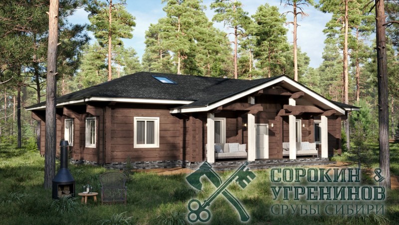 Индивидуальный проект одноэтажного жилого дома из лафета сечением 250х400мм. Общая площадь дома 266м2. Высокие потолки 3 метра, есть холодный чердак более 100м2. Два выхода с террасой, три спальные комнаты, большая светлая гостиная совмещена с кухней, большая детская игровая комната и одна спальная, большой коридор, тамбур, техническая комната, гардеробная, прачечная, два санузла. Дом установлен в Новосибирске в районе Кольцово в 2020 году.