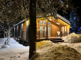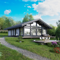 Каркасная технология PREFAB. Доставляют на место стеновые панели, собирают за 5-7 дней.
